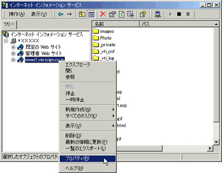- 証明書が作成されたWebサイト(ホスト)を選択します。マウスを右クリックして、[プロパ